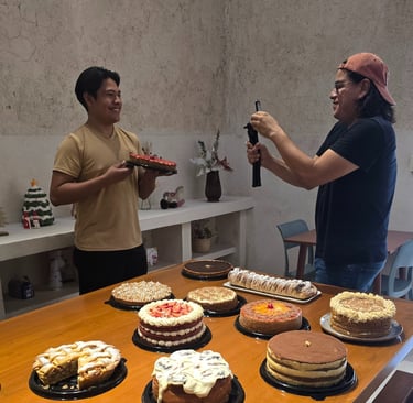 Esta semana salimos del taller para una pequeña aventura: una sesión de fotos en Alma Cálida, una de las cafeterías que confía en nosotros para surtir su pan de masa madre. El plan era sencillo: capturar nuestros postres en versión grande los que están pensados para reuniones, fiestas y momentos donde compartir es parte del encanto y dejar que cada pieza hablara por sí misma.